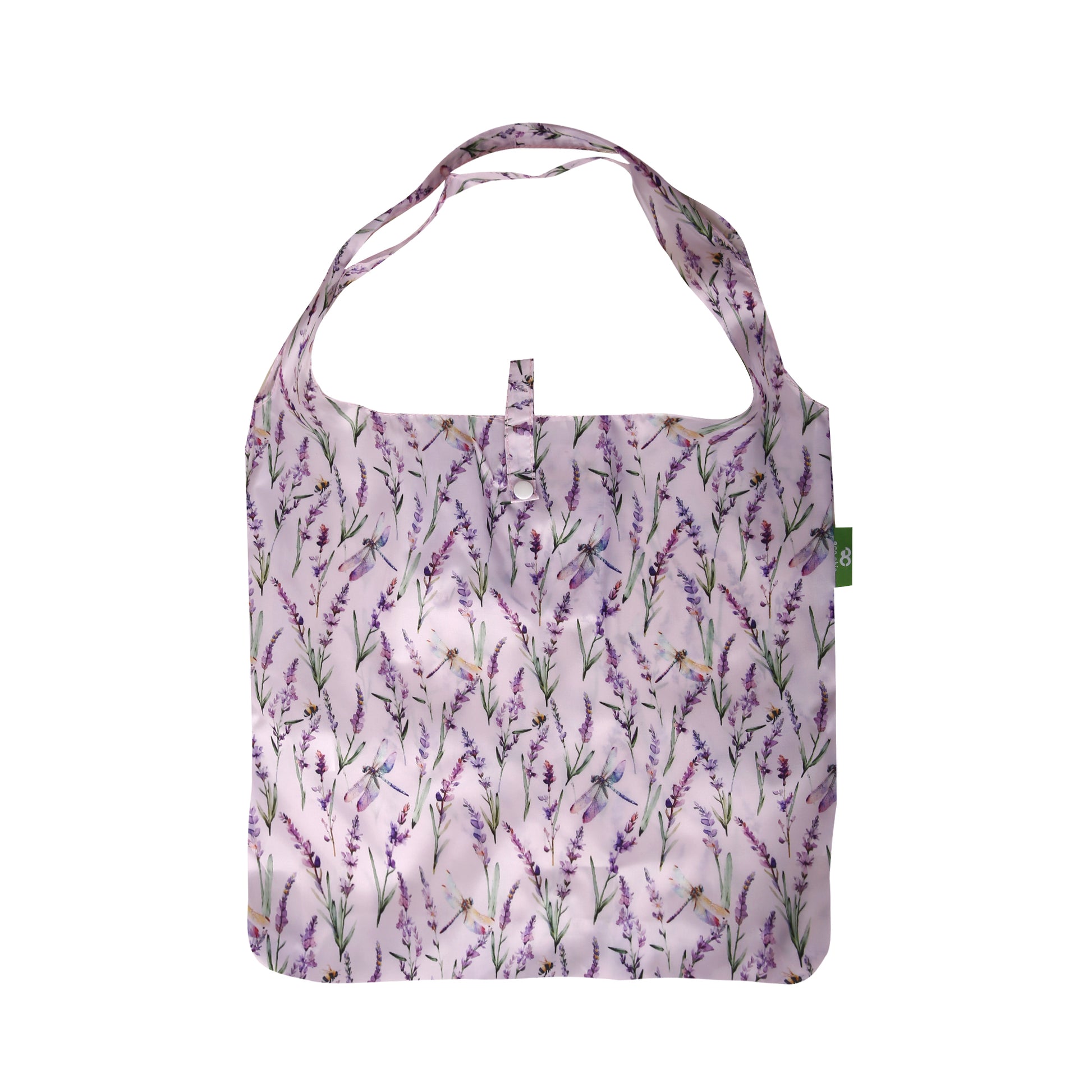 A113LC - Eco Chic Lightweight Foldable Reusable Shopping Bag Lavender with Dragonfly Lilac (Pack of 2)