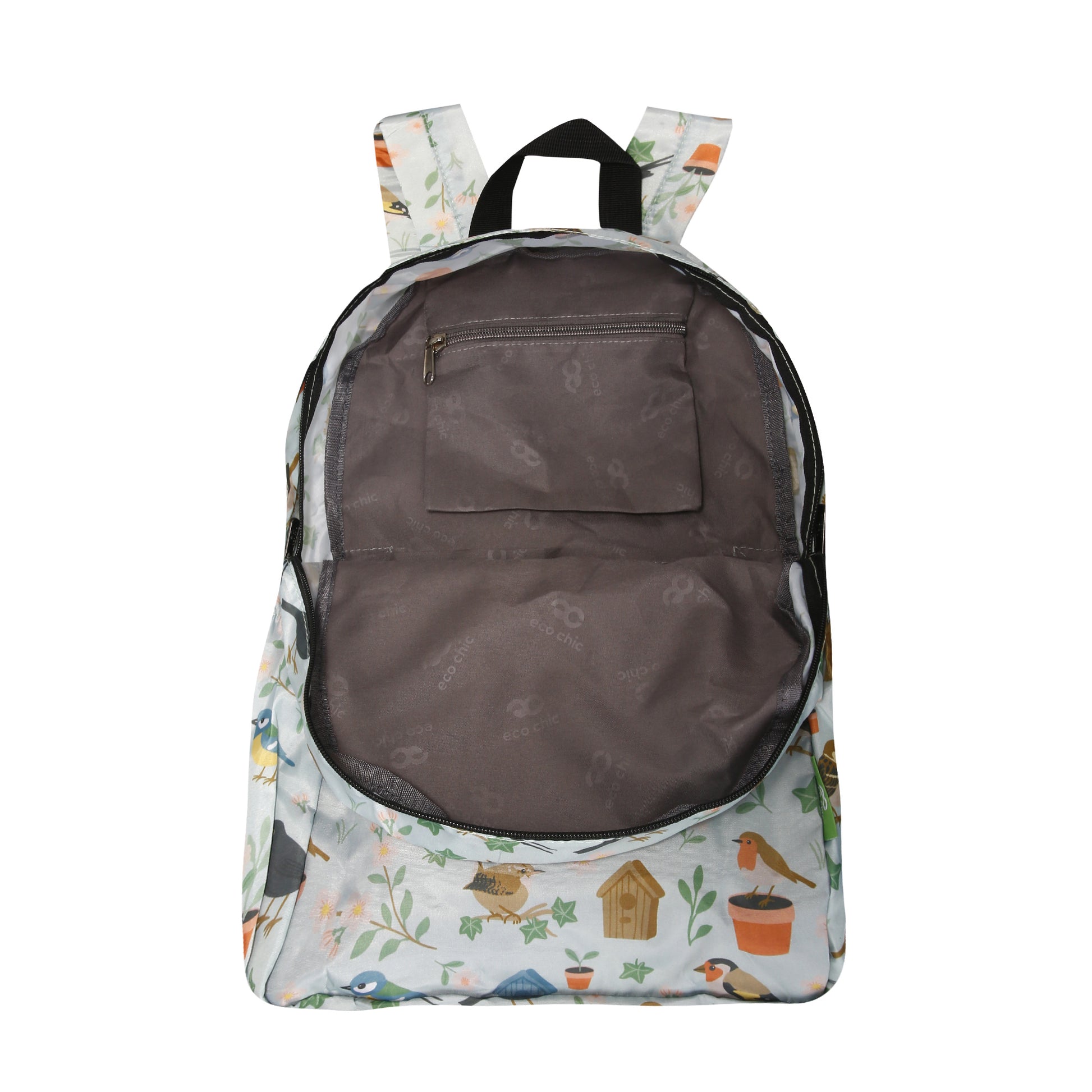 B108GN - Eco Chic Lightweight Foldable Backpack Garden Birds Green (Pack of 2)