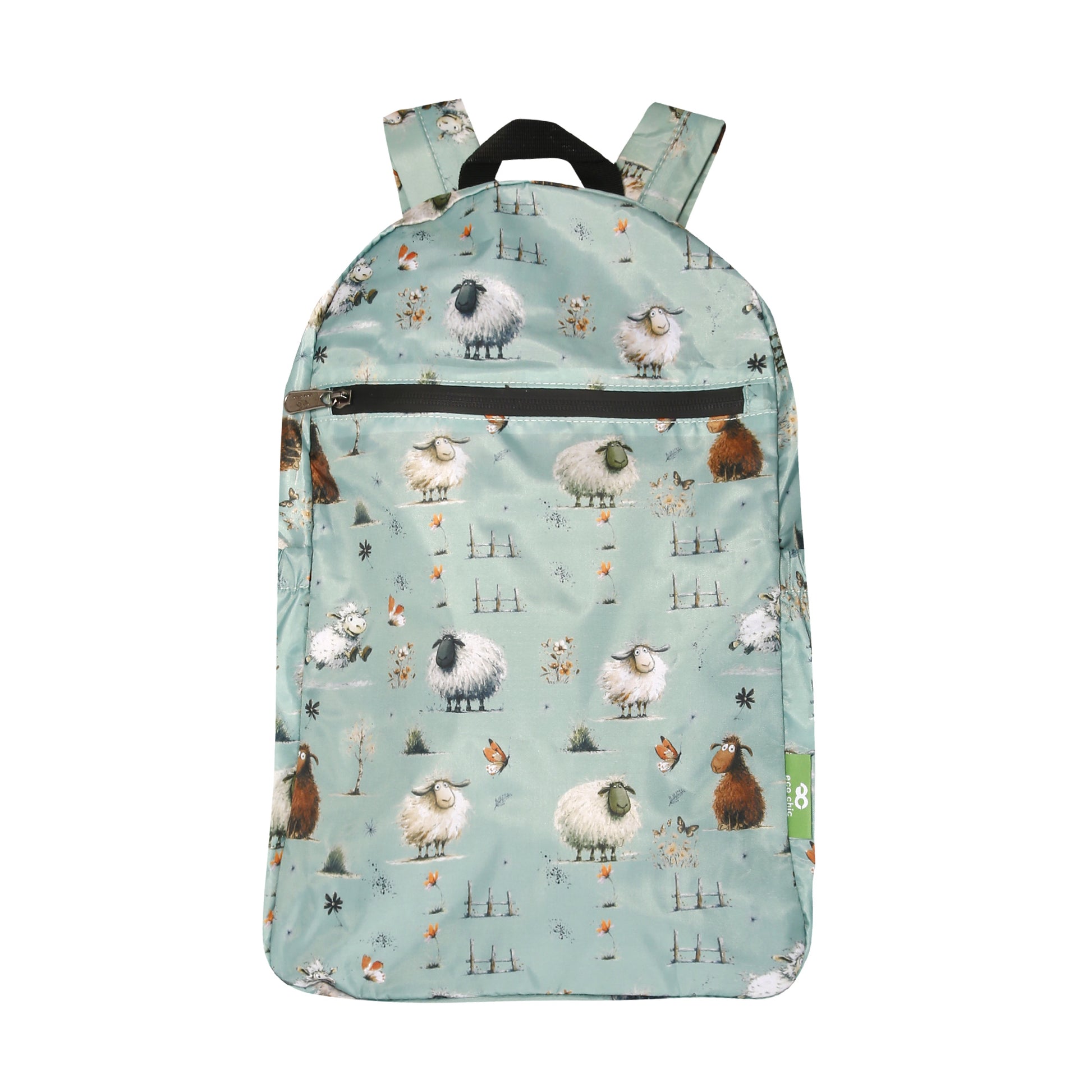 B119GN - Eco Chic Lightweight Foldable Backpack Whimsy Sheep Green (Pack of 2)