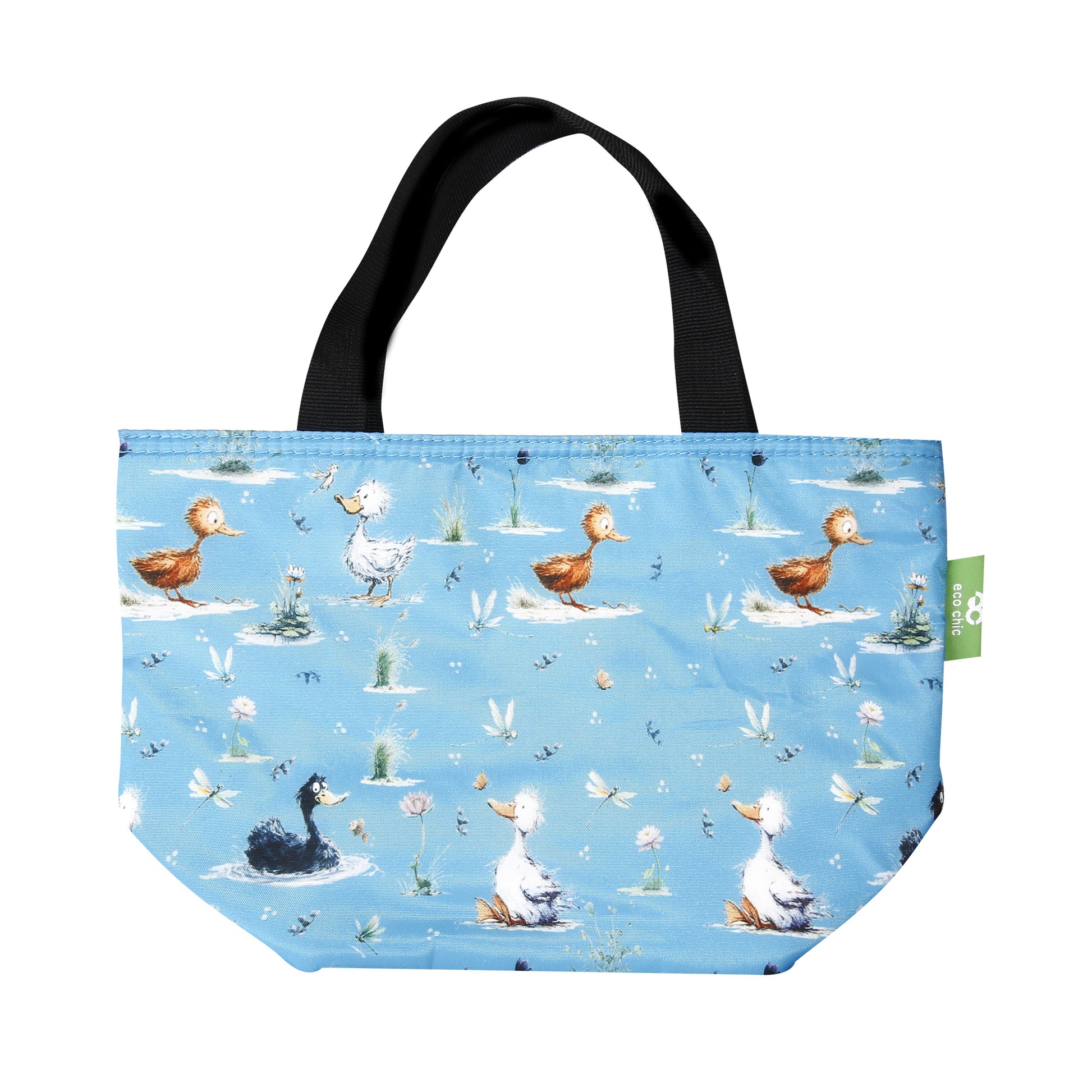 C120BU - Eco Chic Lightweight Foldable Lunch Bag Whimsy Ducks Blue (Pack of 2)