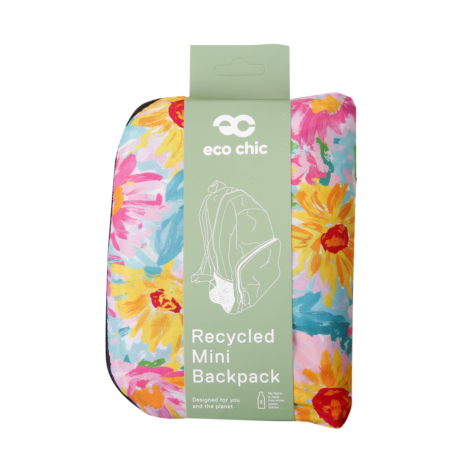 G114BU - Eco Chic Lightweight Foldable Mini Backpack Sunflower Blue (Pack of 2)