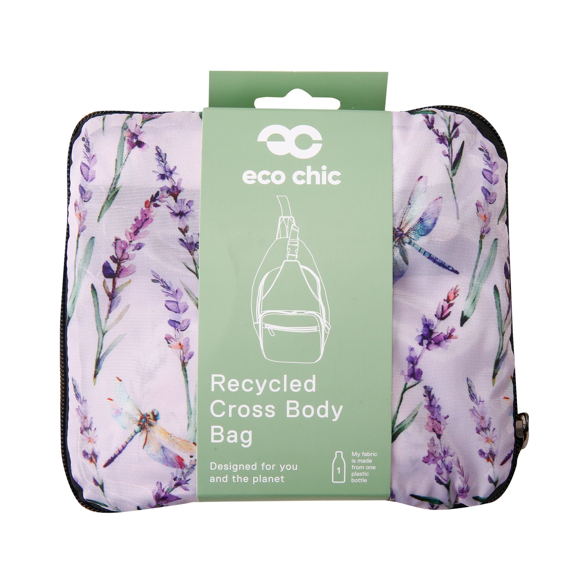 I113LC - Eco Chic Lightweight Foldable Crossbody Bag Lavender with Dragonfly Lilac (Pack of 2)