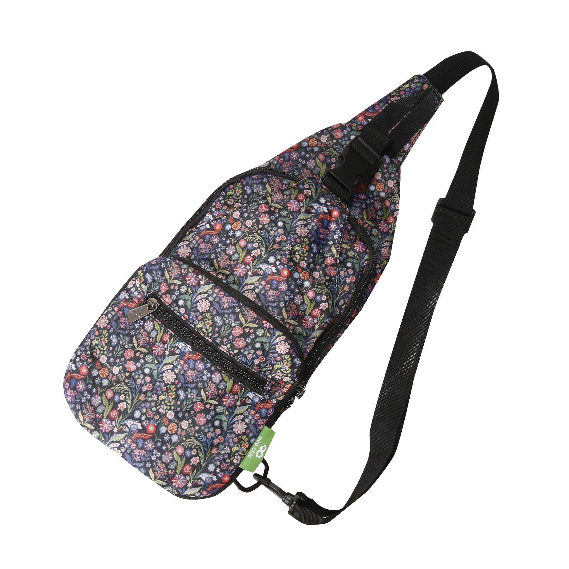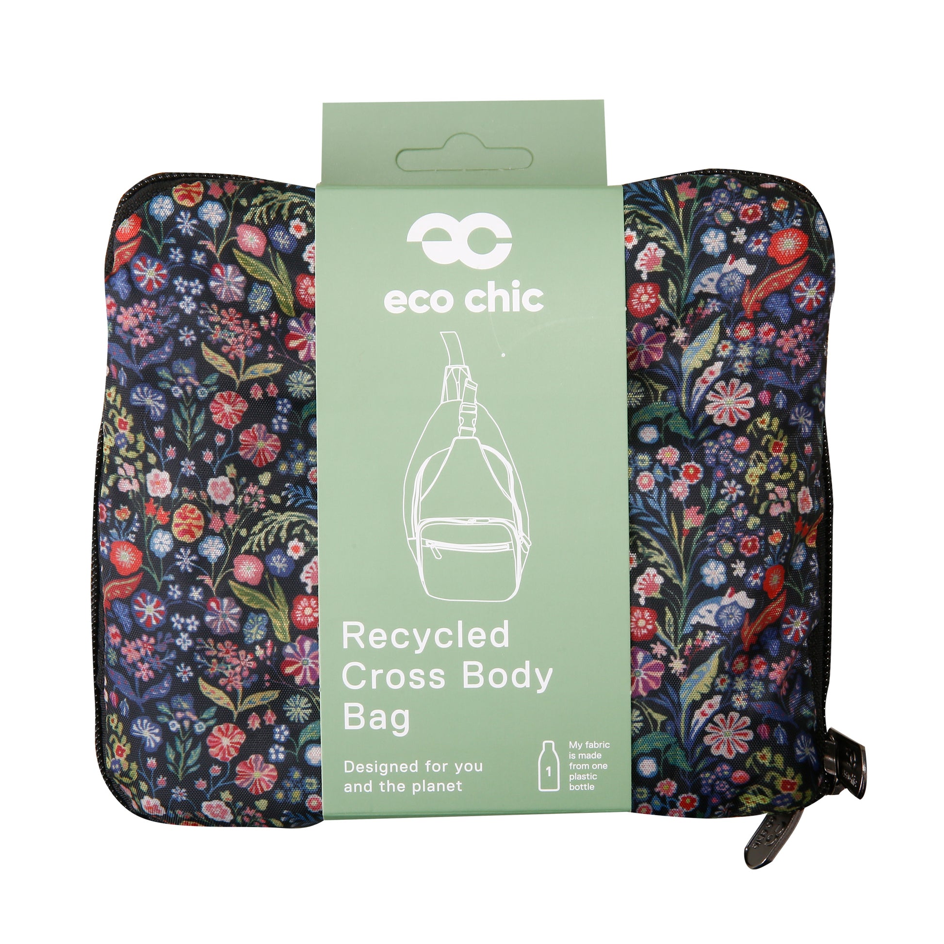I115BK - Eco Chic Lightweight Foldable Crossbody Bag Ditsy Black (Pack of 2)