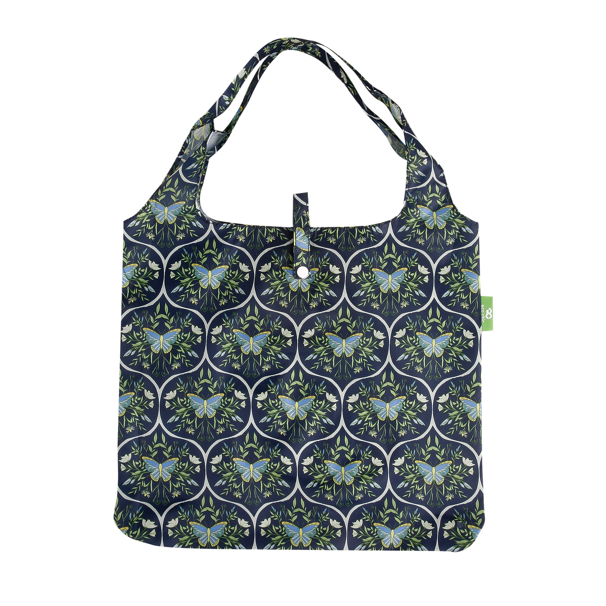 A103NY - Eco Chic Foldable Reusable Shopping Bag Butterflies Navy (Pack of 2)
