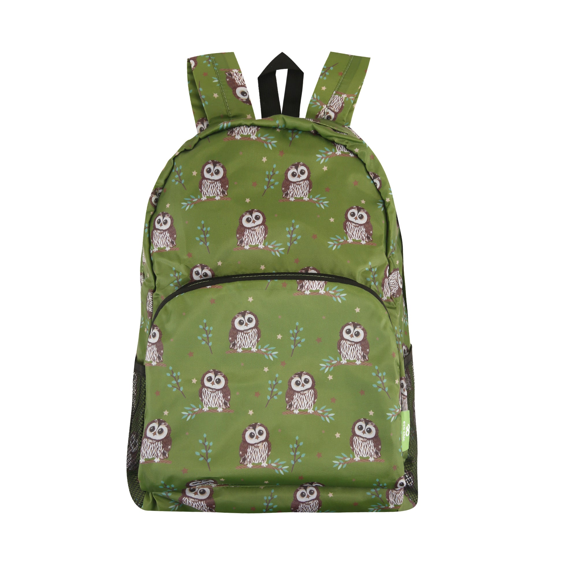 B105GN - Eco Chic Lightweight Foldable Backpack Tawny Owl Green (Pack of 2)