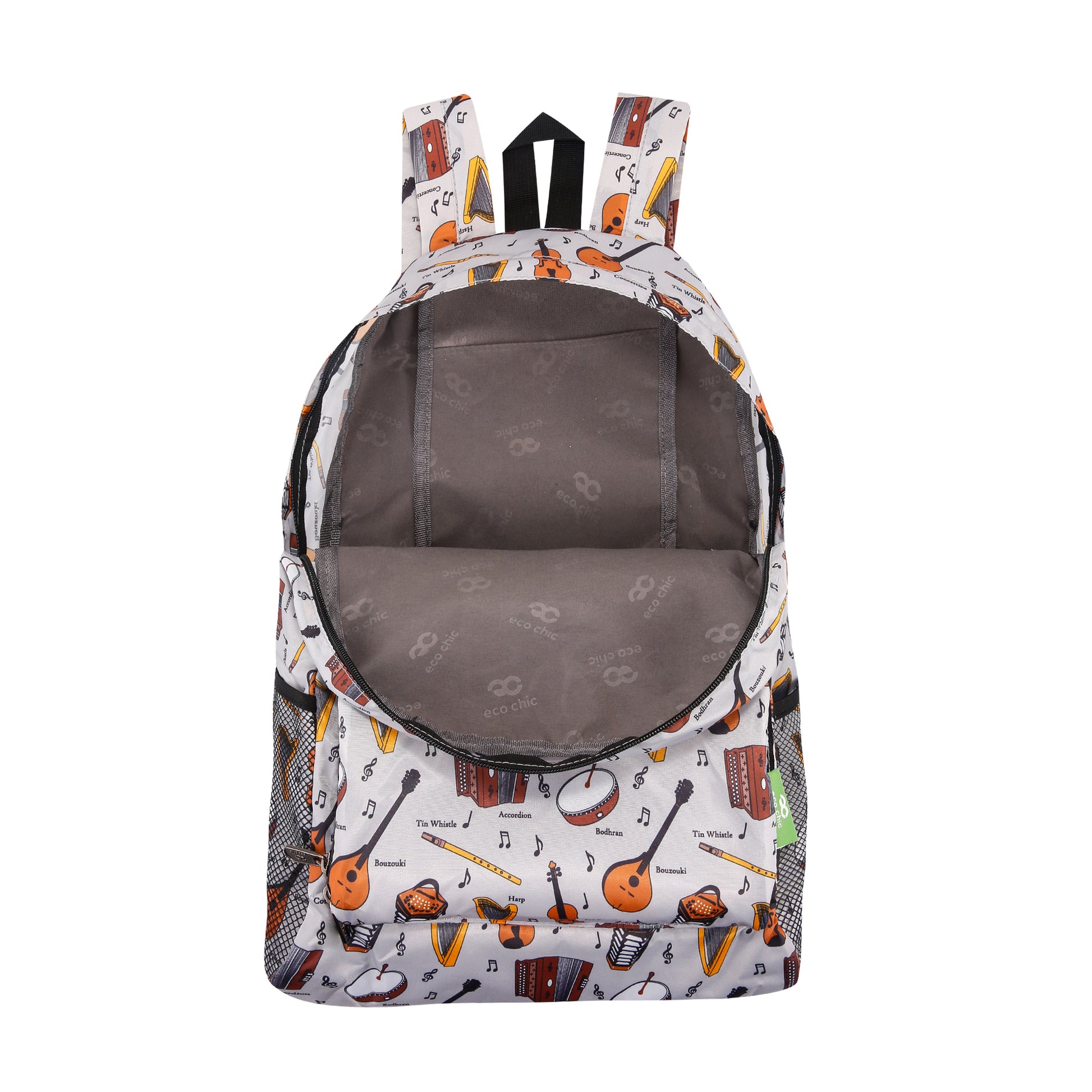 B97GY - Eco Chic Lightweight Foldable Backpack Music Grey (Pack of 2)