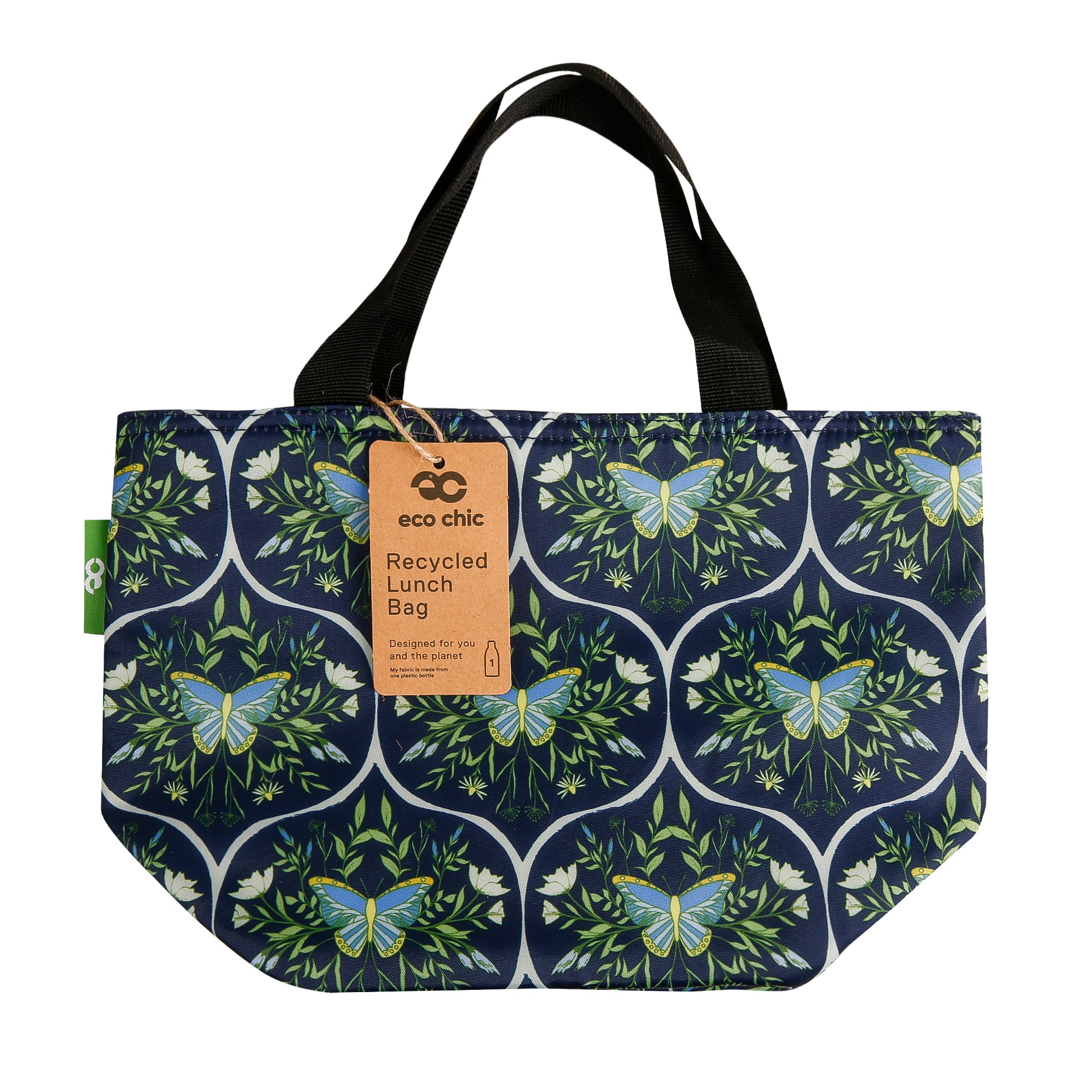C103NY - Eco Chic Lightweight Foldable Lunch Bag Butterflies Navy (Pack of 2)
