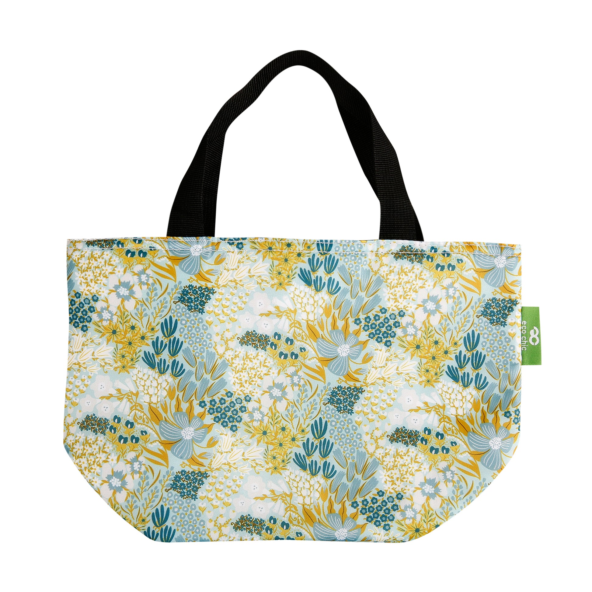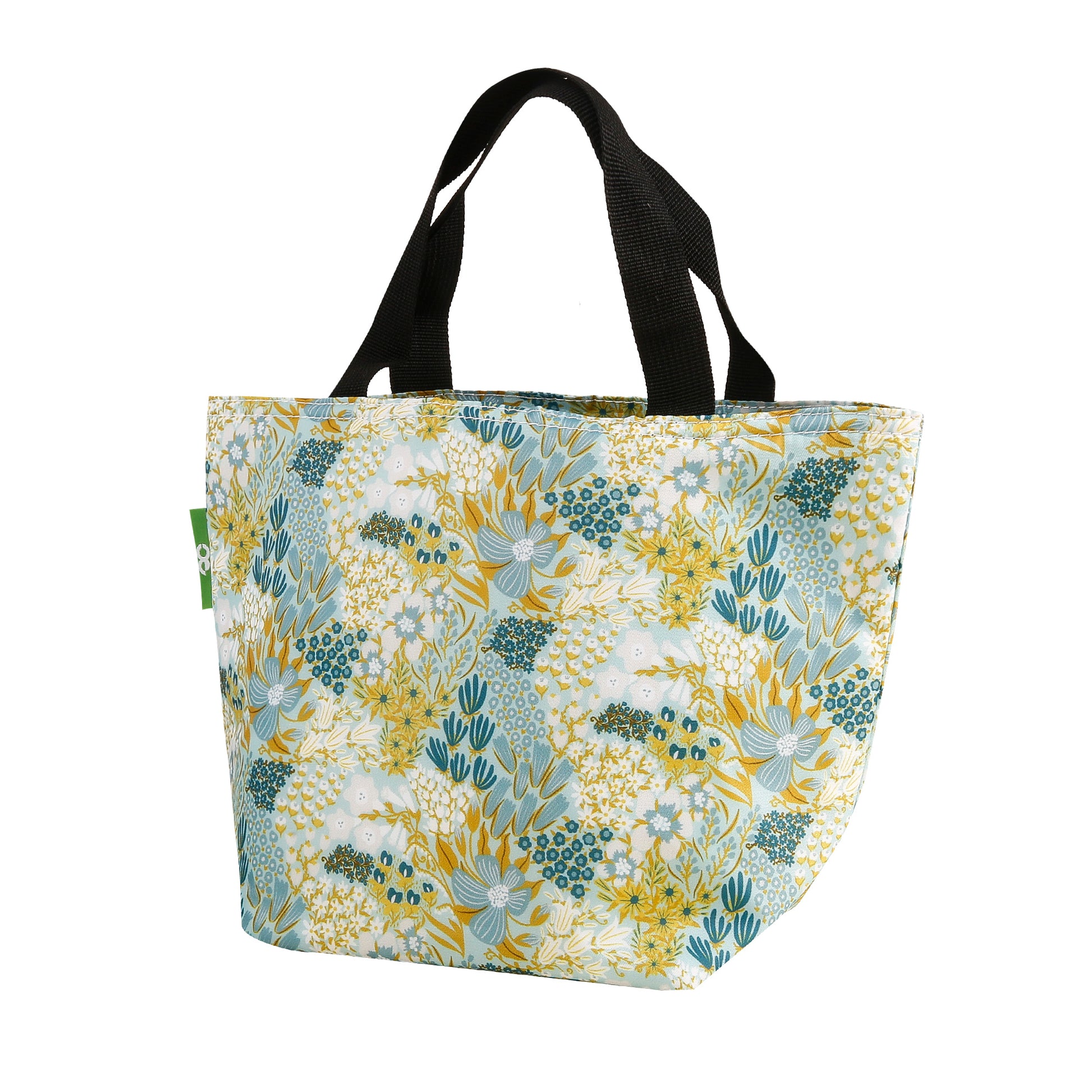 C104BU - Eco Chic Lightweight Foldable Lunch Bag Mixed Flowers Blue (Pack of 2)