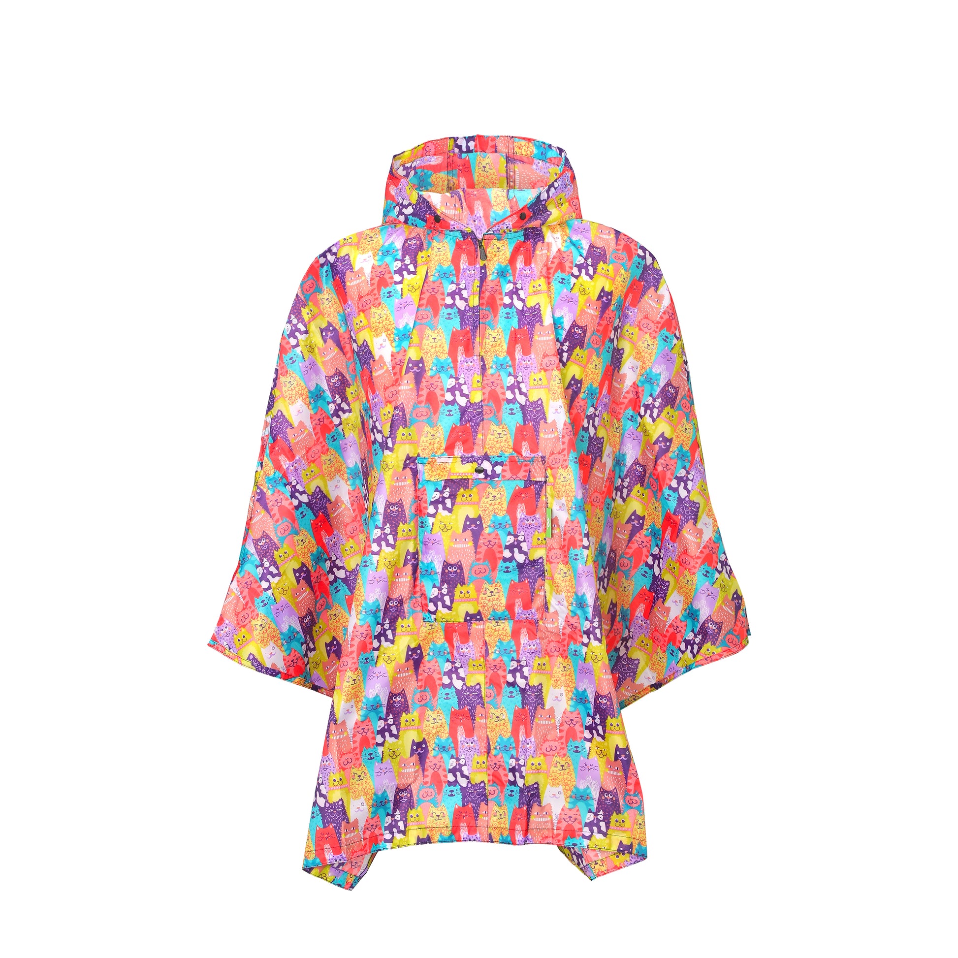L06ME - Eco Chic Waterproof Foldable Adult Poncho Stacking Cats Multiple (Pack of 2)