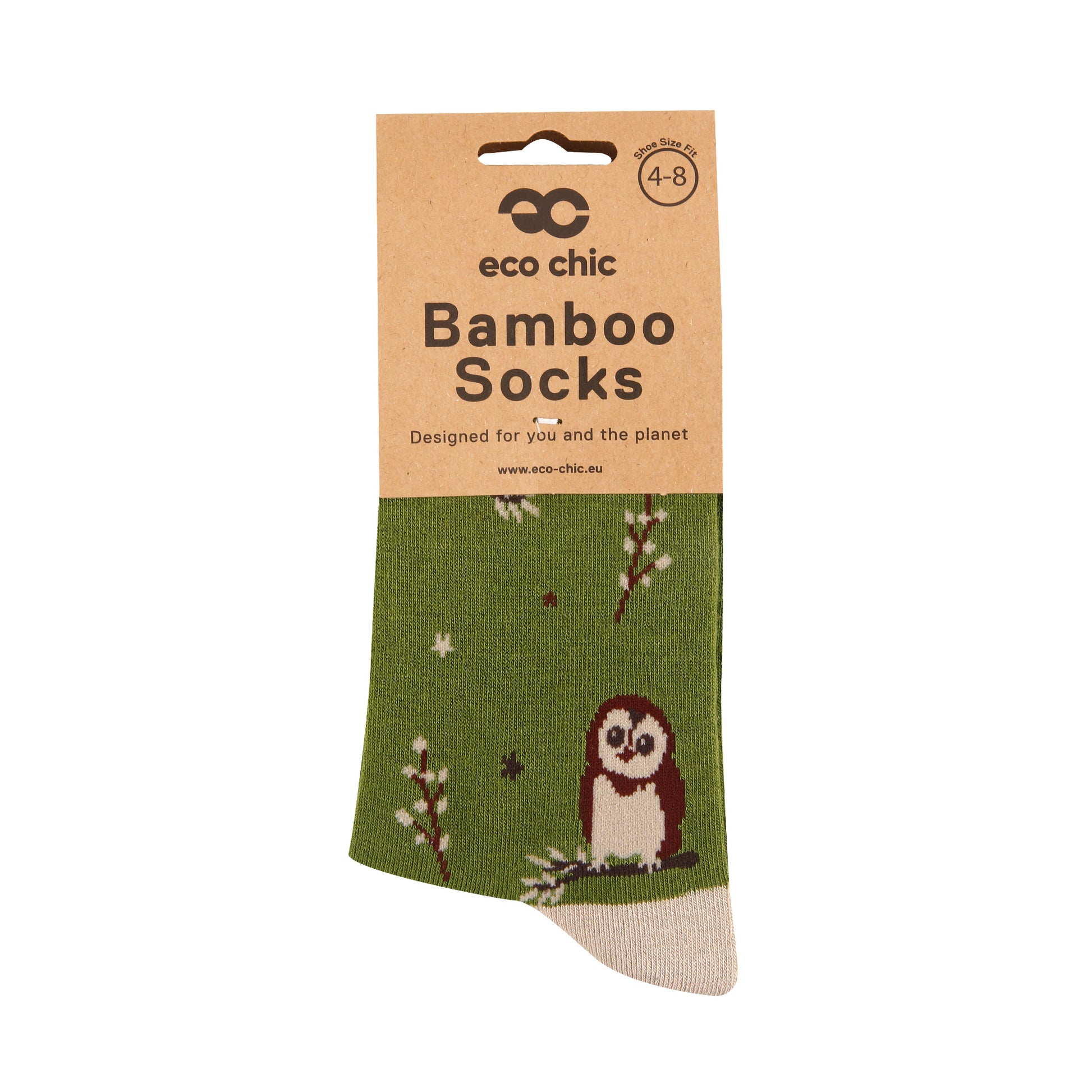 SK105GN - Eco Chic Eco-Friendly Bamboo Socks Cute Tawny Owl Green